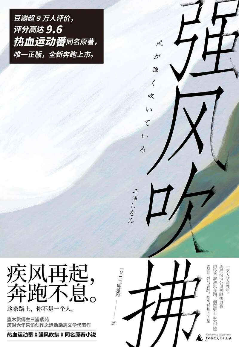日本类似《灌篮高手》的热血体育动漫非常之多,几乎涵盖了全部体育种类。其中,有一部由三浦紫苑的小说改编的动画《强风吹拂》在众多运动番里脱颖而出,被称为“跑步界的《灌篮高手》”。在豆瓣上,它的小说和动画评分也分别得到了9.0与9.6的高分。