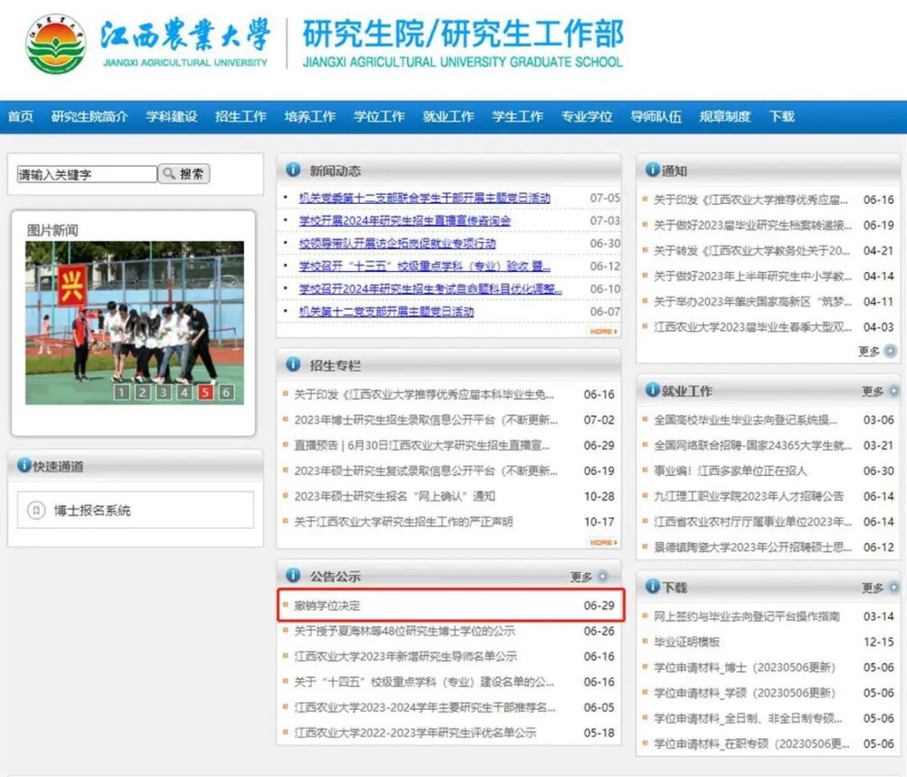 近日,江西农业大学研究生院官网的一则撤销学位决定公告,引发关注。