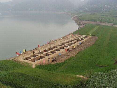房县七里河遗址共发现古房屋遗迹19处、墓葬26处,以及一大批陶器、石器和骨器。经考古鉴定此遗址是新石器年代,距今4200年—4600年。