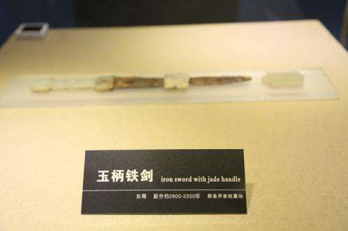 东周玉柄铁剑,春秋中晚期时代产物,距今约2500年,2006年郧县五峰乡乔家院墓地出土。