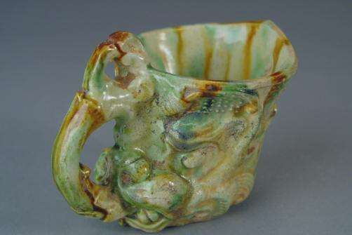 唐三彩龙首杯,距今约1370年,出土于李泰家族墓。