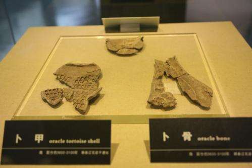 商代卜骨,距今约3600年,出土于郧阳区辽瓦店子遗址。