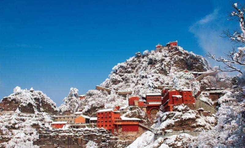 武当山古建筑群敕建于唐贞观年间,明代达到鼎盛,遗存古建筑53处,建筑遗址9处,各类文物5035件。1982年,武当山古建筑群被国务院列入第一批全国重点风景名胜区。1994年,武当山古建筑群被列入世界文化遗产名录,被誉为“中国古代建筑成就的博物馆”和“挂在悬崖峭壁上的故宫”。