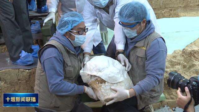 2022年12月3日,在十堰市郧阳区青曲镇学堂梁子遗址,距今100万年左右的“郧县人”3号头骨化石被顺利提取出土。