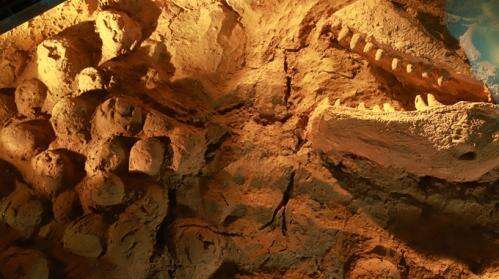 恐龙蛋化石,属于中生代白垩纪,1995年于郧阳区柳陂镇青龙山一带发现。
