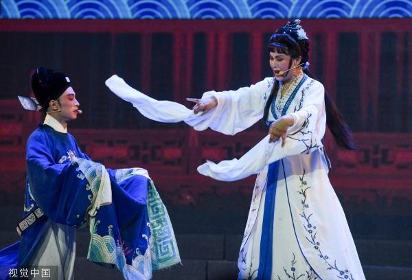 2023年7月17日,江苏淮安,艺术家在淮安市文化馆剧场 “国色添香”梅花奖牡丹奖艺术家专场演出中精彩演绎。当日,由中共江苏省委宣传部、江苏省文学艺术界联合会主办的“我们的中国梦”——文化进万家、优秀文艺成果共享工程——“国色添香”梅花奖牡丹奖艺术家专场演出在江苏省淮安市文化馆剧场举行,11个优秀剧目以实际行动传承弘扬中华优秀传统文化,讲好中国故事、传播好中国声音,让人民聆听到自信的中国迈向复兴的时代壮歌。