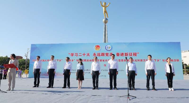 中国青年报客户端讯(中青报•中青网记者马富春 通讯员刘星妤)7月17日,2023年全国大学生“三下乡”“返家乡”社会实践启动周系列活动暨甘肃省大中专学生志愿者暑期文化科技卫生“三下乡”社会实践活动出征仪式在金昌市举行,来自全国23所高校的33支实践队参加仪式。团甘肃省委书记董安宁宣布实践团队出征。