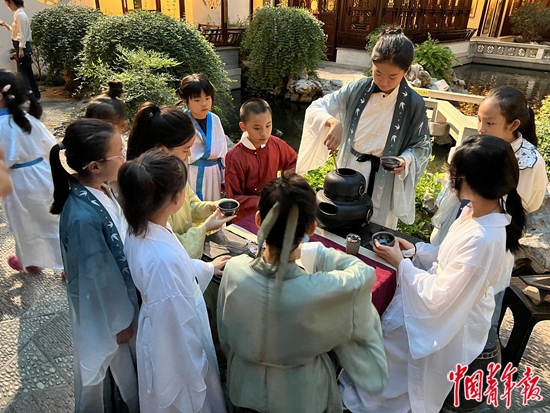 孩子们在实景园林中体验茶文化。中青报·中青网见习记者 余冰玥/摄
