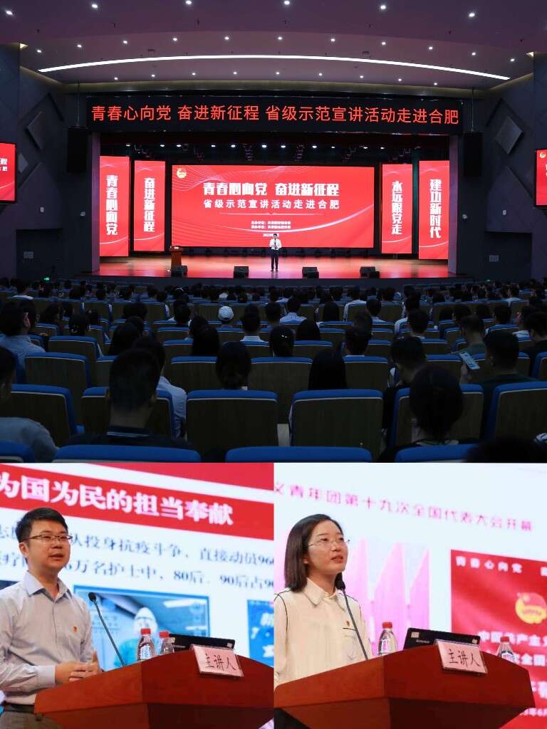 为深入学习宣传贯彻习近平总书记同团中央新一届领导班子集体谈话时的重要讲话精神,全面落实团十九大部署,7月26日,“青春心向党 奋进新征程”省级示范宣讲活动走进合肥。活动邀请团中央“青春心向党 奋进新征程”示范宣讲团成员潘孝楠和周娜娜作宣讲,团安徽省委相关部门负责同志,团合肥市委负责同志出席活动,县(市)区、开发区团(工)委负责人、各行业系统团员青年代表、市青年讲师团成员和青年学生代表等400余人参会。