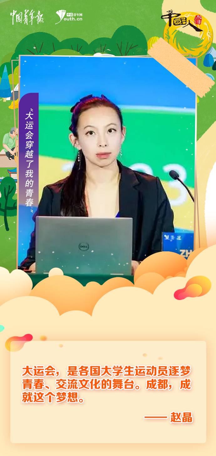 “对我来说,成都从一个名字,变成了同呼吸、共命运的伙伴。”赵晶说,“大运会,是各国大学生运动员逐梦青春、交流文化的舞台。成都,成就这个梦想。”
