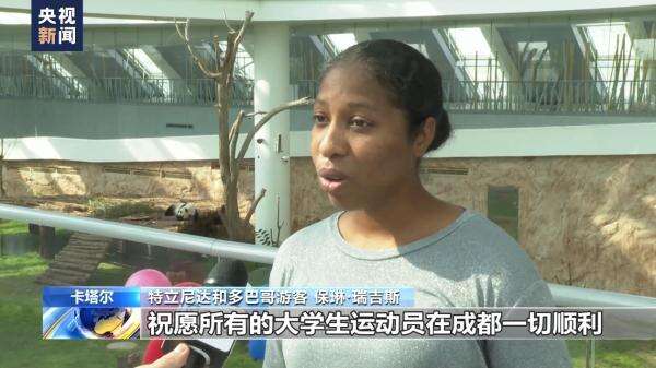 特立尼达和多巴哥游客保琳·瑞吉斯:我来自加勒比海地区的特立尼达和多巴哥,之前是我们国家沙滩排球队队员,祝愿所有的大学生运动员在成都一切顺利,享受比赛,努力拼搏,祝大家好运。