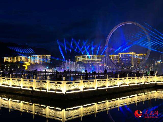 工布公园的音乐水秀喷泉,吸引市民和游客前来拍照打卡。人民网 周静圆摄
