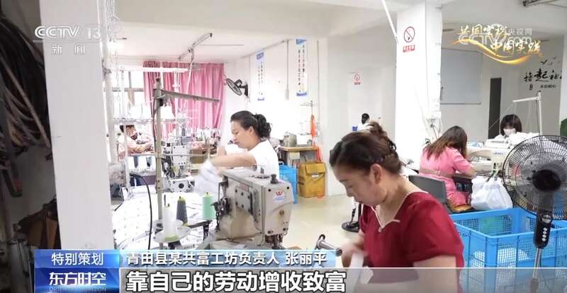 浙江青田县某共富工坊负责人 张丽平:做服装来料加工多年,就想把自己的技术带回来,让我们周边的妇女靠自己的劳动增收致富。