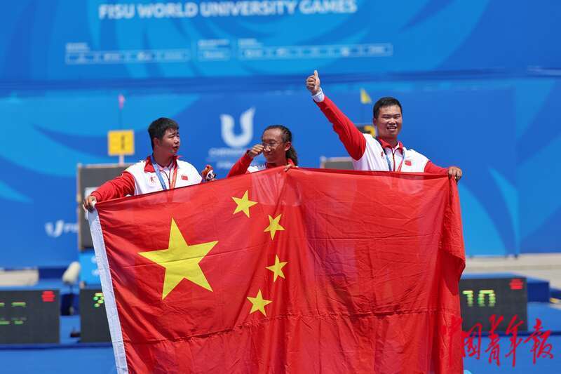 中国青年报客户端成都7月30日电(中青报·中青网记者慈鑫文及视频)这是同济大学土木工程学院大四学生杜美余(已直博)第一次参加世界级的大赛,他与来自曲阜师范大学的王世坤、山东工业职业学院的陈岩松一起,在今天拿下了成都大运会射箭男子复合弓团体赛金牌,这是中国大学生射箭队首次在世界大运会男子复合弓项目上夺冠。第一次参加世界大赛,又拿下了这枚含金量十足的金牌,杜美余却是一脸平静,他说自己的兴奋劲还没有上来。不知道这是不是因为常年的射箭训练塑造了他超强的镇定力。