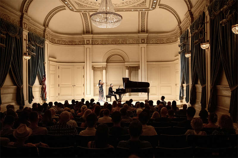 中国青年报客户端讯(中青报·中青网记者 蒋肖斌)曼妙动听的小提琴曲《梨花颂》绕梁不绝,中国作曲家赵季平的《第一小提琴协奏曲》赢得全场观众起立喝彩。近日,中国小提琴家劳黎在纽约卡耐基音乐厅举办专场音乐会。
