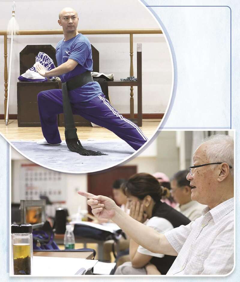 “白玉堂”郝帅。陈金山为演员们说戏。(上海京剧院供图) 制图:张继