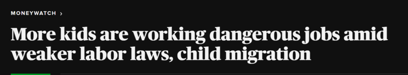 报道称,尽管美国政府表示计划对非法雇佣童工在危险条件下工作的企业实施更为严厉的处罚,但全美违反童工保护法的行为却在上升,各州都在立法削弱童工法。