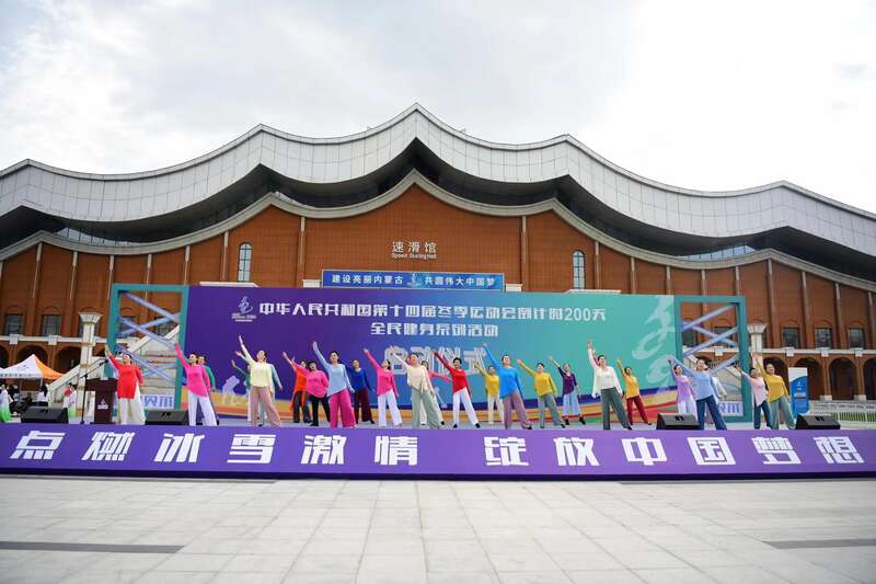 “十四冬”倒计时200天全民健身系列活动启动仪式上的健身舞蹈表演。康文魁/摄