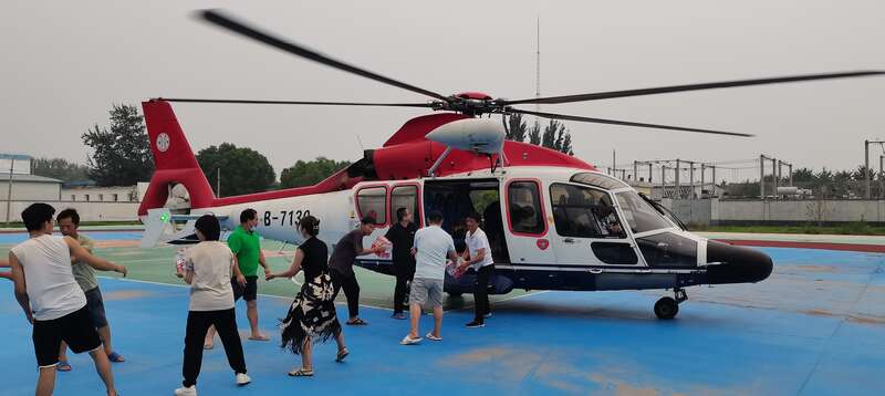 记者了解到,目前涿州部分地区仍存在降雨天气,该机组仍在积极配合当地政府开展物资投运和救助任务,后续根据当地需求和受灾情况实时部署飞行计划。(中国海油供图)
