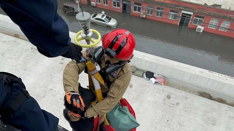 由于涿州当地防汛形势严峻,河道行洪和城市内涝风险加剧,救援地点周围地形复杂,树木及高压电线遍布,并存在山区滑坡、崩塌等次生灾害风险等,这给搜救工作带来巨大挑战。飞行员孙鹏和薛蔚然通过控制直升机高精度平稳悬停,为救生员营救创造条件;救生员曹聪不顾个人安危,反复尝试下达“水中孤岛”,快速搭救被困人员。同时,机组人员利用高亮度搜救灯进行拉网式搜寻,确保不漏一户、不漏一人。