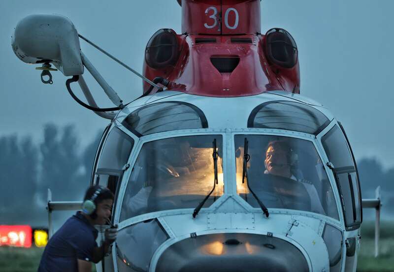 这架编号为B-7130的直升机,是渤海油田渤西、渤南区域的3架倒班飞机之一,于2日5时15分从天津塘沽起飞,6时8分抵达灾区备降点,7时45分投入救援抢险任务,按照搜救路线,在被洪水围困的城镇和村庄十公里范围内的低空反复盘旋,尽一切可能搜救失联、被困人员。