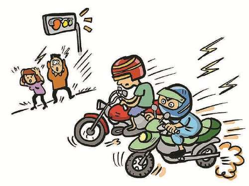 今年5月19日晚,赵先生与家人在海边堤岸散步,突然听到远处两辆摩托车伴随着刺耳的轰鸣声呼啸而过,仔细一看,原来是这两辆重型摩托车在马路上追逐竞驶。“这路上来来往往都是行人,还有老人小孩,这些摩托车相互追逐非常危险。”眼看他们还要进行第二次比赛,赵先生连忙拿起手机拍下了这一幕,并将线索反映给了公安机关。