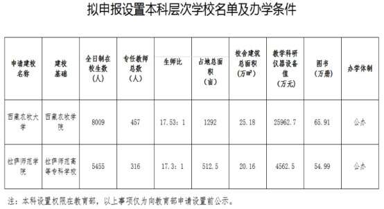 7月17日,西藏自治区发布公示,拟申报西藏农牧学院更名为西藏农牧大学、拉萨师范高等专科学校更名为拉萨师范学院。
