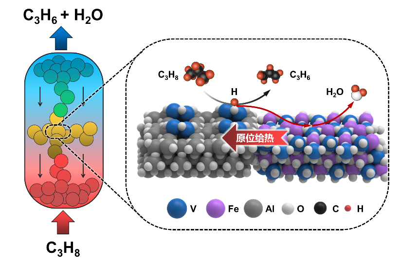 实现“双碳”战略目标对我国化工行业绿色低碳转型提出了重要要求。推动丙烯这一重要的化工基础原料的低碳化生产,具有十分重要的科学和战略意义。在丙烯生产工艺中,丙烷脱氢(Propane dehydrogenation)技术因其产品单一性好、经济性效益高、石油依赖性低等备受瞩目。然而,丙烷脱氢是热力学平衡受限的强吸热反应,需在较高温度下(>600 ℃)才能得到较高转化率,能耗和碳排放量高。因此,如何创新丙烯生产工艺,实现体系热量自给并突破热力学平衡限制,是提升丙烯生产能效的关键。