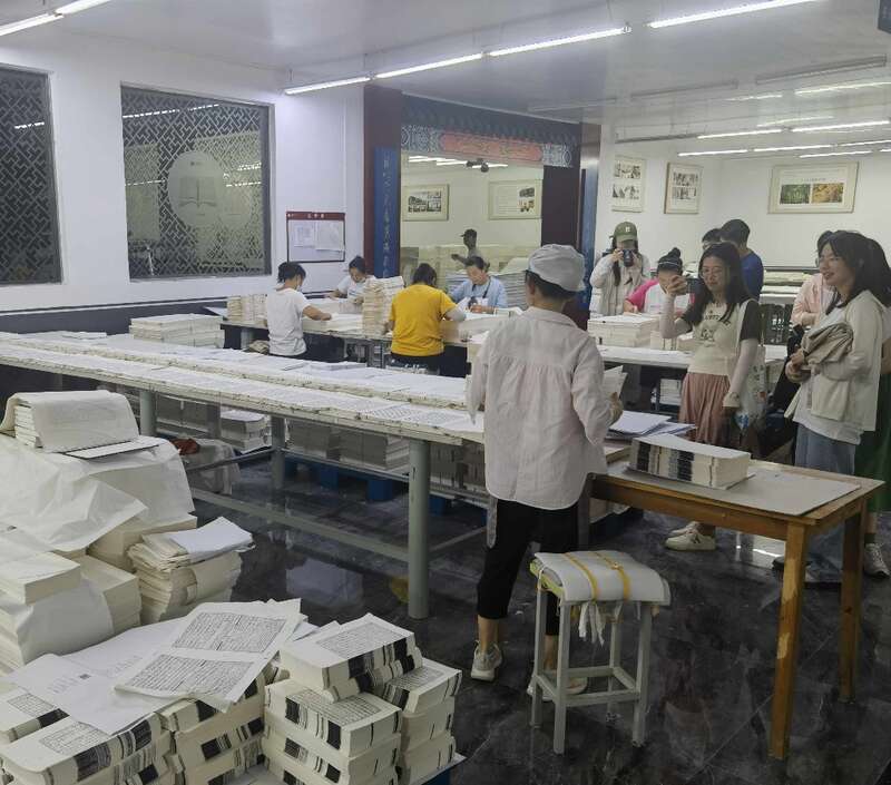 中国美术学院暑期社会实践团队在泾县拍摄和学习线装书过程。王海涵/摄