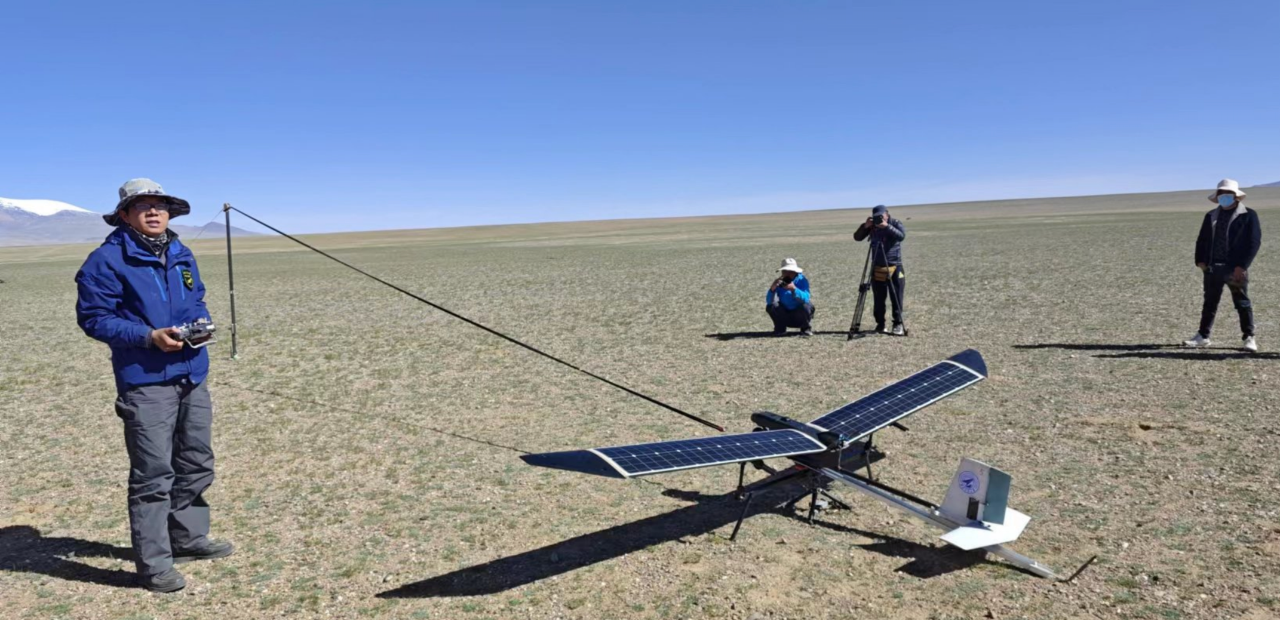本次使用的“魅影•燕”太阳能无人机起飞重量3.8kg,翼展3.3m,最大航时12h,最大巡航高度6000m,专门针对高原生态调查需求进行优化设计,可搭载光电、红外等多种相机,满足高原生态监测需求。与此同时,“魅影•燕”无人机结合当前“云”传输技术,能够将实时画面同步至云端,使远在西安的异地专家可以通过互联网参与至科考任务中。