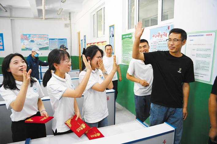 6月27日,新疆精河县大河沿子镇第一中学,期末考试结束后,支教老师给同学们举办散学礼。看着孩子们快乐地奔向远方,他们心中充满不舍。