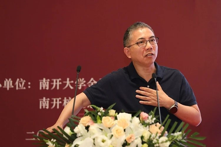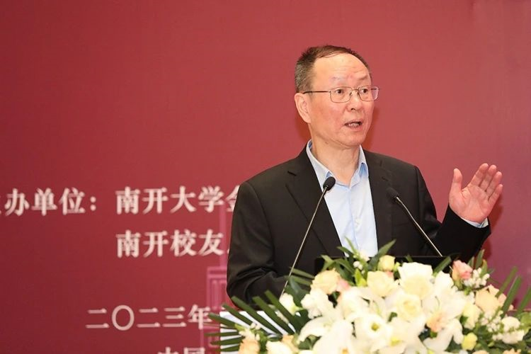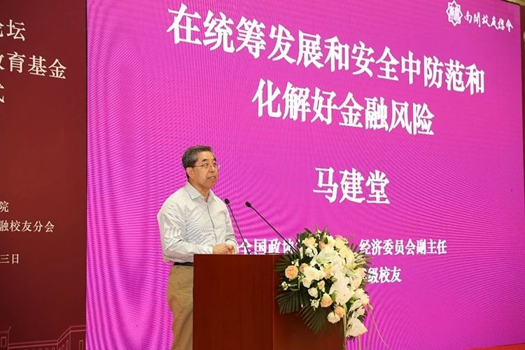 马建堂 校友回顾了在南开大学求学时钱荣堃先生讲授金融学的深厚学识,并作《在统筹发展和安全中防范和化解好金融风险》 主旨演讲。