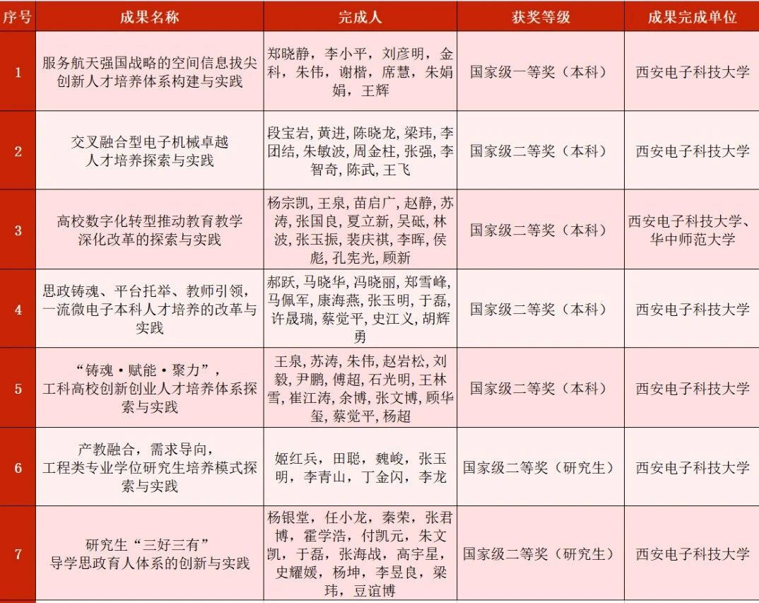 7月24日,教育部发布《关于批准2022年国家级教学成果奖获奖项目的决定》,西安电子科技大学共7项成果获得国家级教学成果奖。
