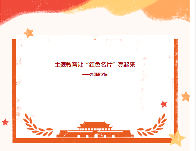 自学习贯彻习近平新时代中国特色社会主义思想主题教育开展以来,外国语学院党委牢牢把握“学思想、强党性、重实践、建新功”总要求,坚持以学生成长为中心,用习近平新时代中国特色社会主义思想铸魂育人,积极引领学生党支部开展主题教育,让学生党员亮出“红色名片”,推进主题教育见行见效。