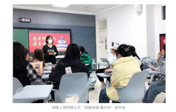 入党积极分子跟进学。 加强入党积极分子教育培养,把学习贯彻习近平新时代中国特色社会主义思想和党的二十大精神作为首要任务,切实提升发展党员工作质量。学院分党校精心设计《第十四期入党积极分子培训方案》,开设“党章”和“铸牢中华民族共同体意识”专题学习、走进红色课堂、“深度悦读·道中华”读书会、小组专题研讨等模块,教育引导学员深刻认识开展主题教育的重大意义,坚定理想信念,自觉按照党员的标准严格要求自己,争取早日成为一名合格的中国共产党党员。