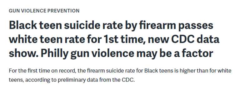 费城公共广播电台WHYY网站13日报道称,专家指出,美国费城和其他主要城市的枪击事件频发、枪支获取难度低、社交媒体加剧绝望情绪等因素可能是导致黑人青少年自杀率上升的原因。