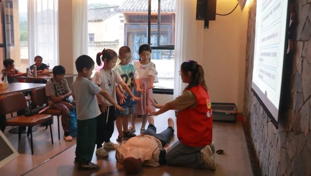 根据镇政府工作实际需要,队员们前往南溪镇老年食堂、敬老院持续开展文艺小汇演、测量血压等助老服务。在丁埠村开展防溺水宣传工作,并配合心肺复苏进行教学,30余名家长和孩子积极参与其中。队员们还积极参与走进社区,面向群众,以“拉呱”聊天式宣讲,把党的二十大精神、乡村振兴政策、金融知识、国家医保政策和燃气使用安全知识传播到居民身边,讲到百姓心中。