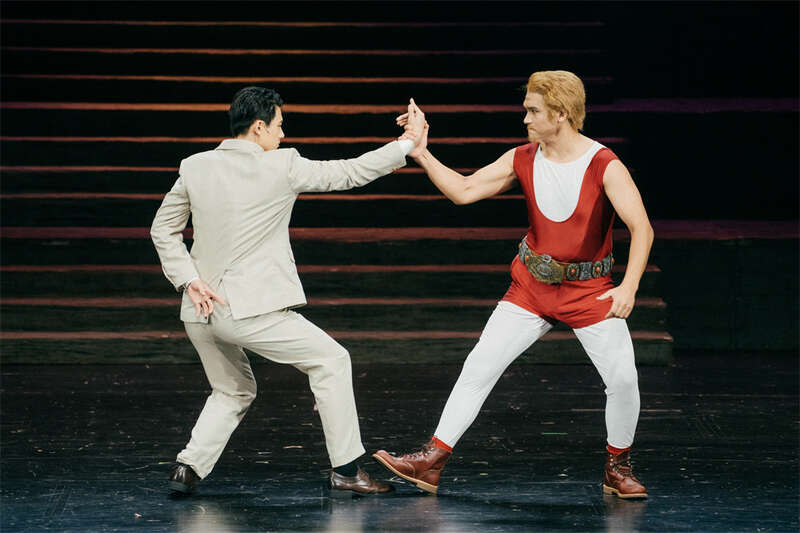 大家熟悉的香港武打电影,往往靠剪辑和特效制造出令人炫目的打斗场面;但徐浩峰的新派武侠电影之所以独树一帜,因为有着武学功底和人文精神的他设计的武打动作,讲究干净利落、拳拳到肉的写实打斗,把握住了现实环境中武打场面的真实性,以现实主义笔触还原出当时人物的行为方式和精神状态。也正是因为这样的武打风格,徐浩峰可以不借助电影特效手段,将实打实的武打场面搬上戏剧舞台,给人以更加身临其境的逼真之感。《搭手飞人》中的武打场面并不多,也没有电影里那种势均力敌你死我活的激烈较量,基本上是实力悬殊,点到为止,重在体现故事情节和人物命运。