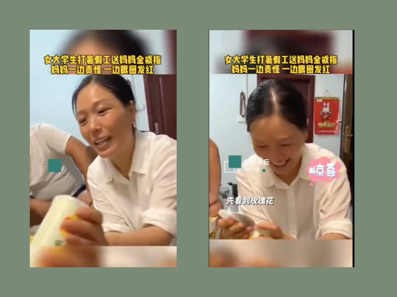 近日,河南商丘,女大学生暑期打工挣钱给妈妈买了一枚金戒指,并把戒指藏起来制造惊喜。妈妈发现后,一边嘴里“责备”女儿打暑假工挣钱不容易,一边红了眼眶。网友:小时候给妈妈画的饼实现啦!“中国人的故事”系列作品以广大青少年为主要服务对象,用新视角发掘典型人物故事,弘扬中国精神;用新话语吸引青年关注,化解成长烦恼;用新风格丰富形式手段,运用微信图文、短视频、漫画长图等方式,适用移动端传播,运用互联网思维,给重大议题和主流价值插上故事的翅膀,将“中国梦”概念具体化、故事化、情节化,力争做到引人入胜、触动灵魂。用鲜活的人和事感染人、激励人、鼓舞人,用中华民族伟大复兴的中国梦凝聚人心、汇聚力量。