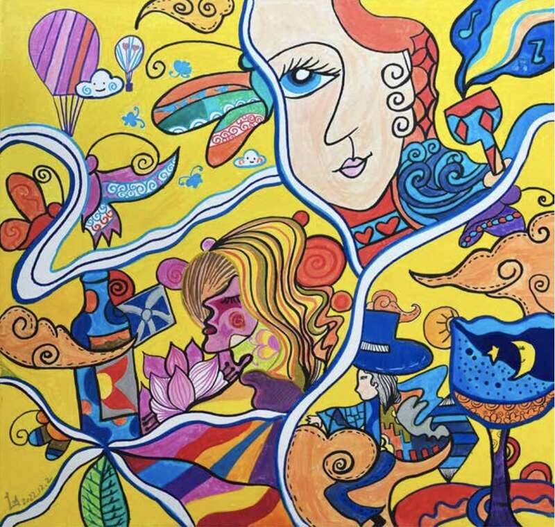 青年艺术家李歆介绍,展览共分为4个篇章:第一篇章“追古”,作品以红山文化、仰韶文化、大汶口文化、龙山文化等遗址出土的文物为灵感来源,并与数字艺术结合;第二篇章“溯今”,展出富有贵州民族特色的画作,展现了屯堡文化、阳明文化、贵州桥文化等;第三篇章“万象”,把安徒生的童话故事融入其中,呈现童趣的视觉体验;第四篇章“无极”,展出抽象艺术、IP潮玩等。