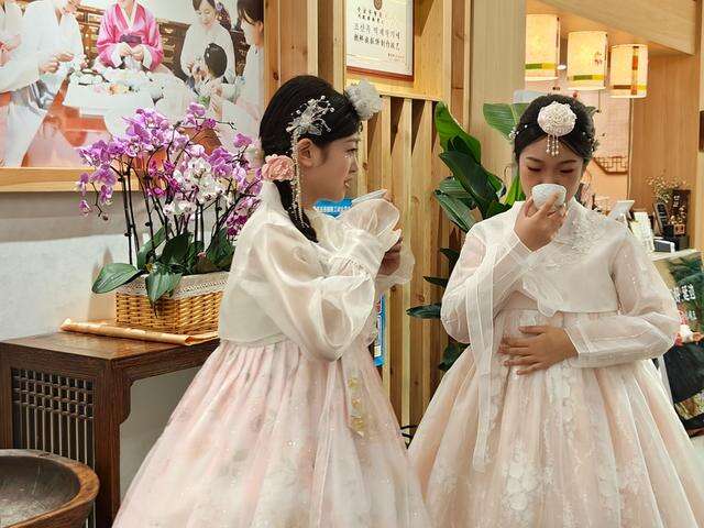 在朝鲜族服饰馆内,琳琅满目的传统服饰吸引了大江南北的游客,人们纷纷试穿装扮、拍照留念,沉浸式体验朝鲜族传统民俗文化之美。在朝鲜族宫廷花米糕体验馆,不同食材、不同颜色、不同造型的米糕吸引不少游客驻足品尝。为了迎合现代人的口感和营养需求,朝鲜族宫廷花米糕非遗传承人李香丹对传统工艺进行改良,在厚饼馅中加入夏威夷果仁和腰果,提高馅料的香甜口感和营养价值。