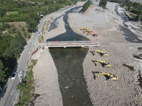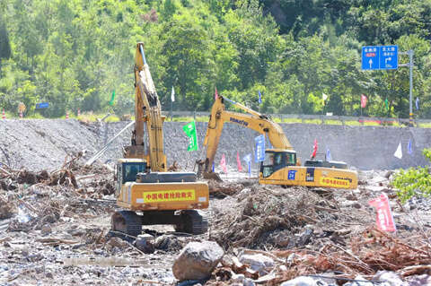 自8月15日以来,青年抢险队员们24小时不间断连续奋战,白天迎着朝阳抢险救灾,夜晚披着星光部署调配,在灾区重建一线筑起一道青春堤坝。(中电建建筑集团团委供图)