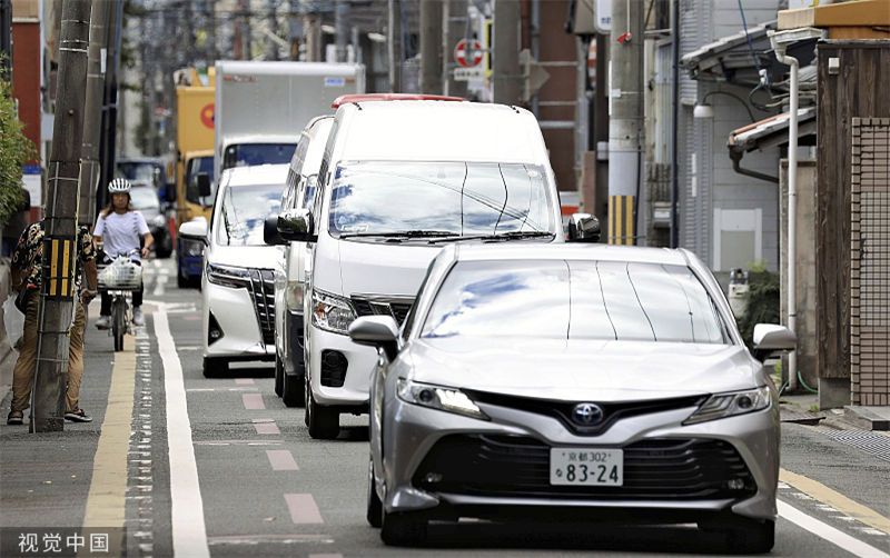 当地时间2023年9月5日,日本京都,载着青叶真司的汽车抵达京都地方法院。本文图片均为 视觉中国 图