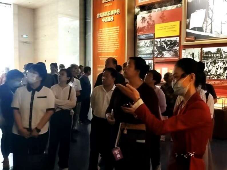 9月6日,中国共产党历史展览馆讲解员正带领市民观展。实习生 陈智敏/摄