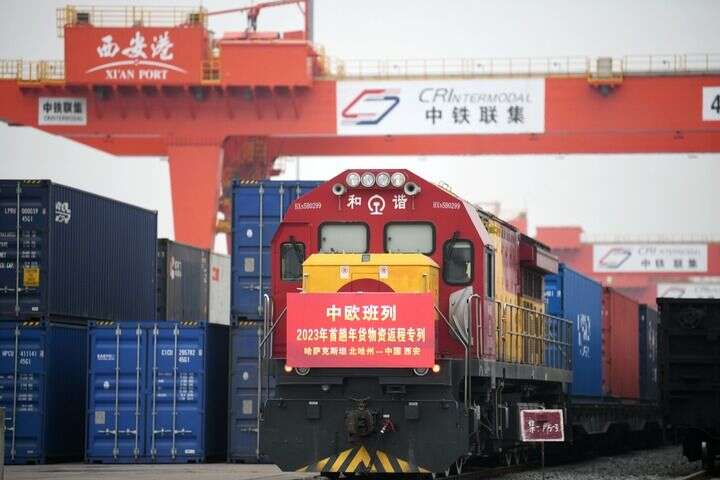 1月13日,满载着来自哈萨克斯坦1300吨面粉的中欧班列抵达西安国际港站。这标志着2023年首趟中欧班列年货物资返程专列顺利抵达西安,为即将到来的春节拉来了“洋年货”。