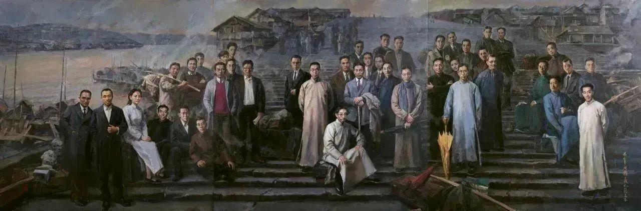 《国美春秋四联之壹——1928·清明》油画 300x900cm 许江、孙景刚、邬大勇