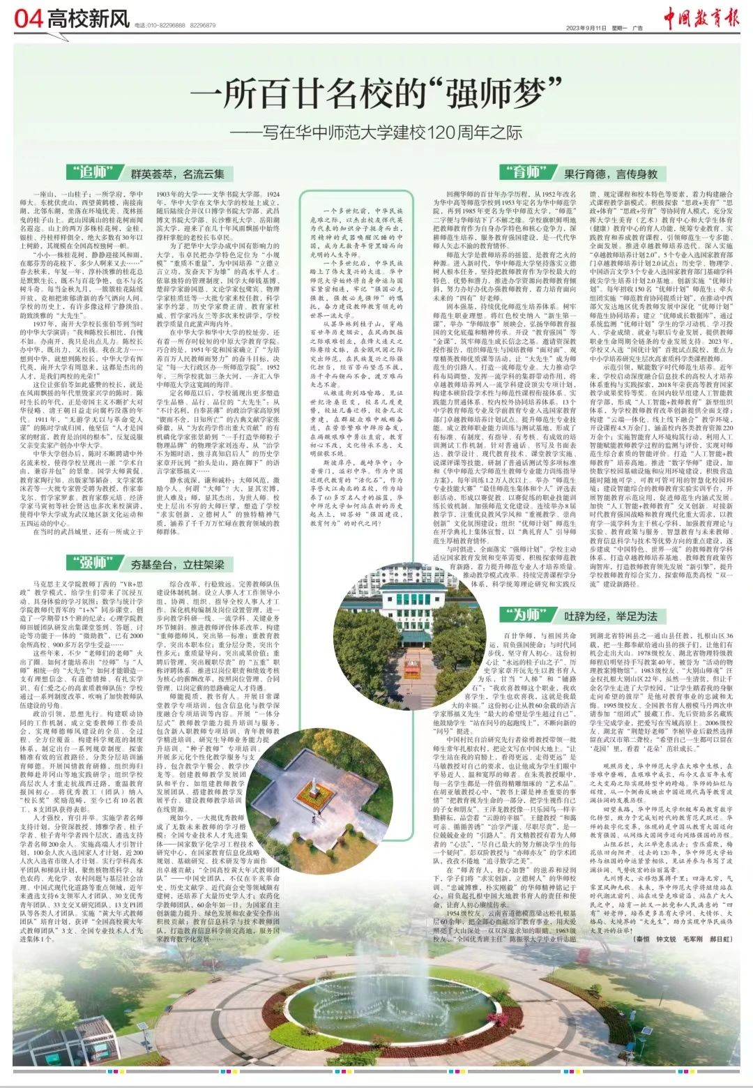 回溯华师的百廿年办学历程,从1952年改名为华中高等师范学校到1953年定名为华中师范学院,再到1985年更名为华中师范大学,“师范”二字便与华师结下了不解之缘。学校旗帜鲜明地把教师教育作为自身办学特色和核心竞争力,深耕师范生培养,服务教育强国建设,是一代代华师人矢志不渝的教育情怀。