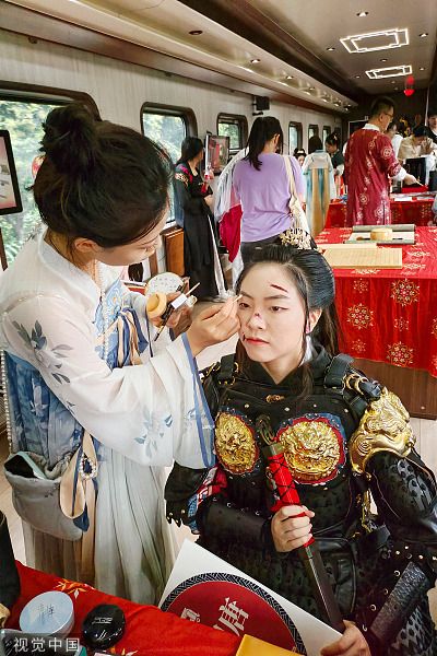 为了让游客能够更好地感受汉服之美,本次旅游专列除设置汉服、甲胄展示区外,创造性地设立了专门的化妆区,配备专业化妆师,为游客打造出最完美的唐代形象,体验从未有过的“上车变身,下车穿越”的独特旅行感受。