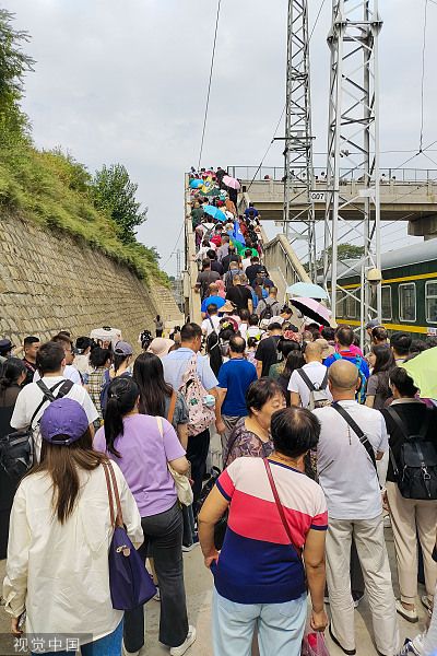 2023年9月9日,西安市,游客们在潼关车站下车,享受一次沉浸式的文化穿越之旅。
