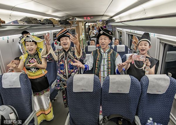 2023年8月31日,贵阳至南宁高速铁路全线开通运营,文艺演出的场景。